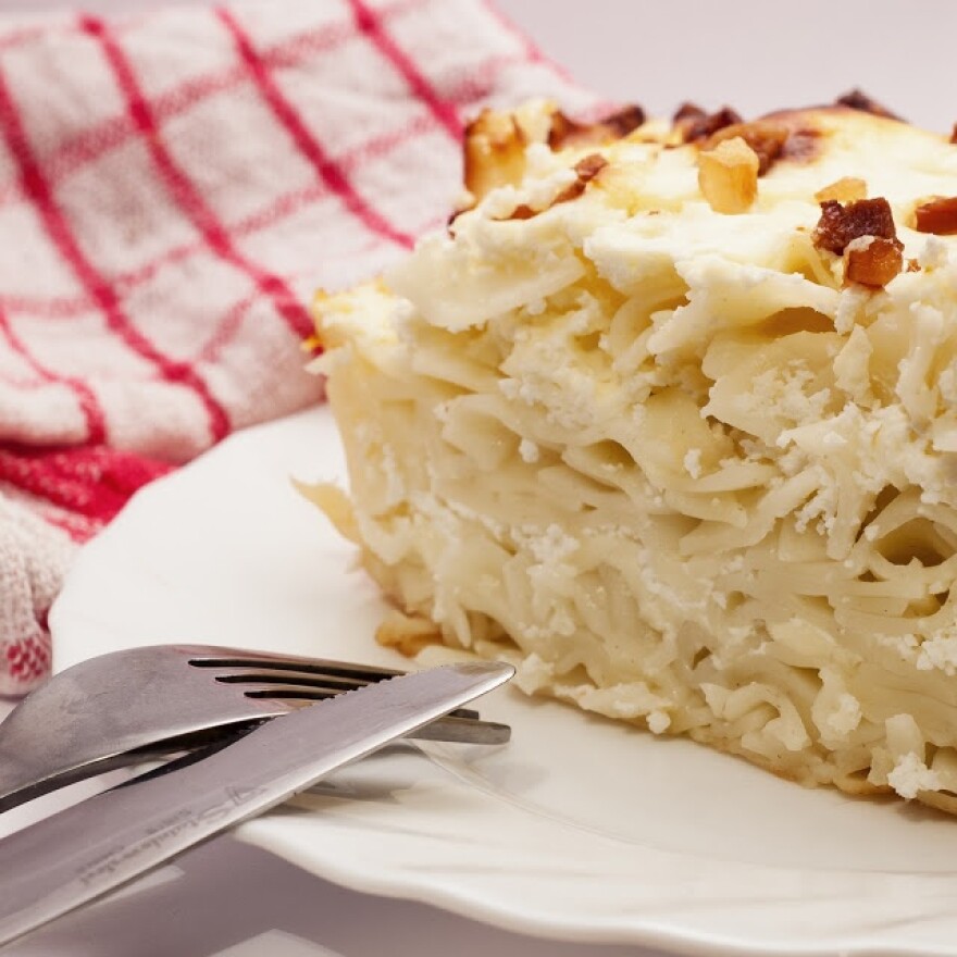 Túrós Csusza- Curd or cottage cheese noodles. The traditional kind are normally homemade with flour, eggs mixed into a dough and torn by hand so they look uneven then boiled in water. It’s savory and totally comforting.