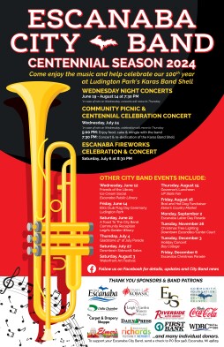 Join the Escanaba City Band as they celebrate their Centennial Season! There will be special activities and guest conductors throughout the summer. Follow them on Facebook for up-to-the-minute information.
