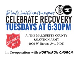 Celebrate Recovery is a Christ-centered, 12 step recovery program for anyone struggling with a hurt, habit or hang-up of any kind. Celebrate Recovery is a safe place to find community and freedom from the issues that are controlling our life. (WWW.NORTHIRON.CHURCH or call 906-485-5561)