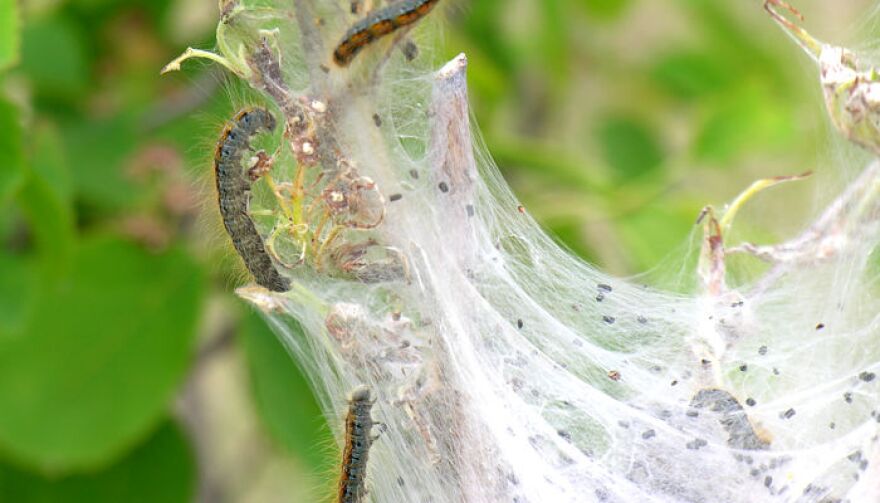 The state Natural Resources department says the critters are eating leaves from sugar maple, aspen and oak trees and leaving small strands of webbing.